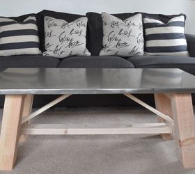 Connect table legs with a Kreg Jig, wrap tabletop with metallic film, and glue wood into place. Get tutorial here