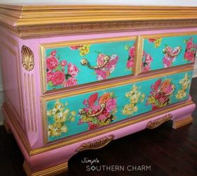 From the pretty flowers to the gold trim, this dresser is bound to make you love pink. Get tutorial here
